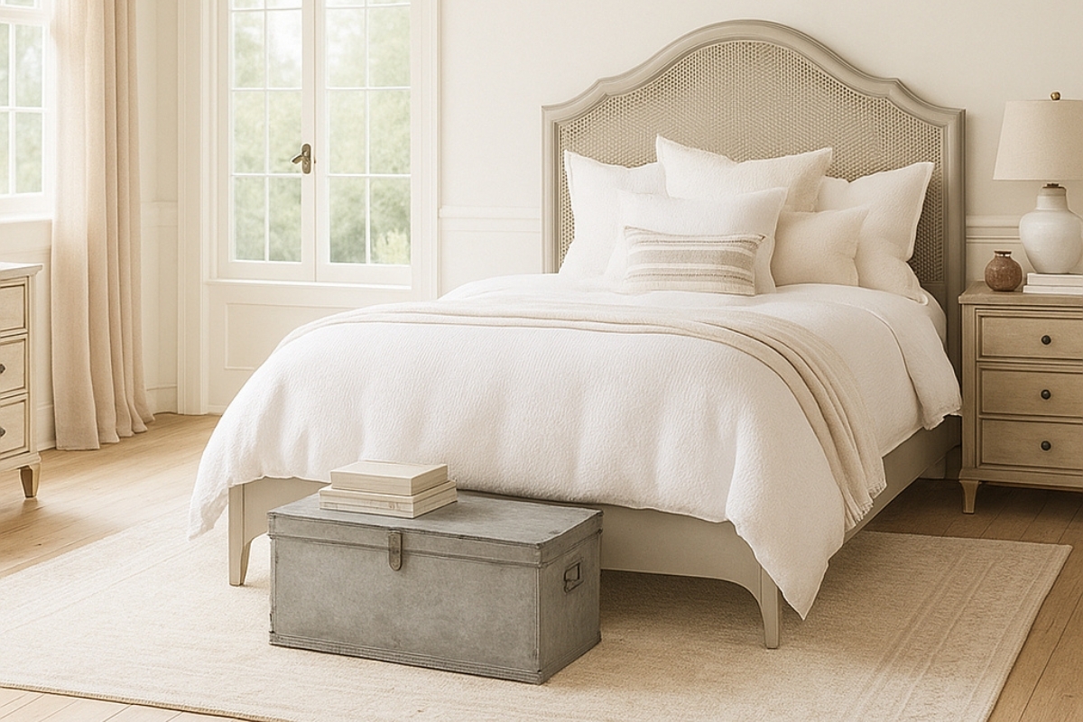 Furniture can either support or disrupt the feeling of lightness in a room. In a coastal farmhouse bedroom, the goal is to choose pieces that feel substantial in quality but visually effortless.