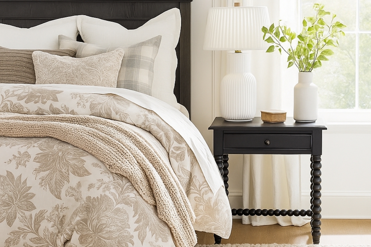 Linen bedding introduces a relaxed softness that feels perfectly suited to spring. A lightweight quilt or coverlet adds subtle structure, while a woven rug—such as jute or sisal—grounds the space with natural texture. Small accents, like rattan or cane, can be introduced sparingly to add visual interest without overwhelming the room.